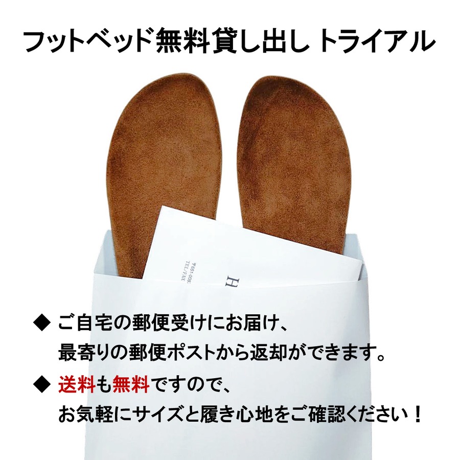 ◆サイズ選びがご不安な場合、フットベッド無料貸し出し トライアルをご利用ください。
