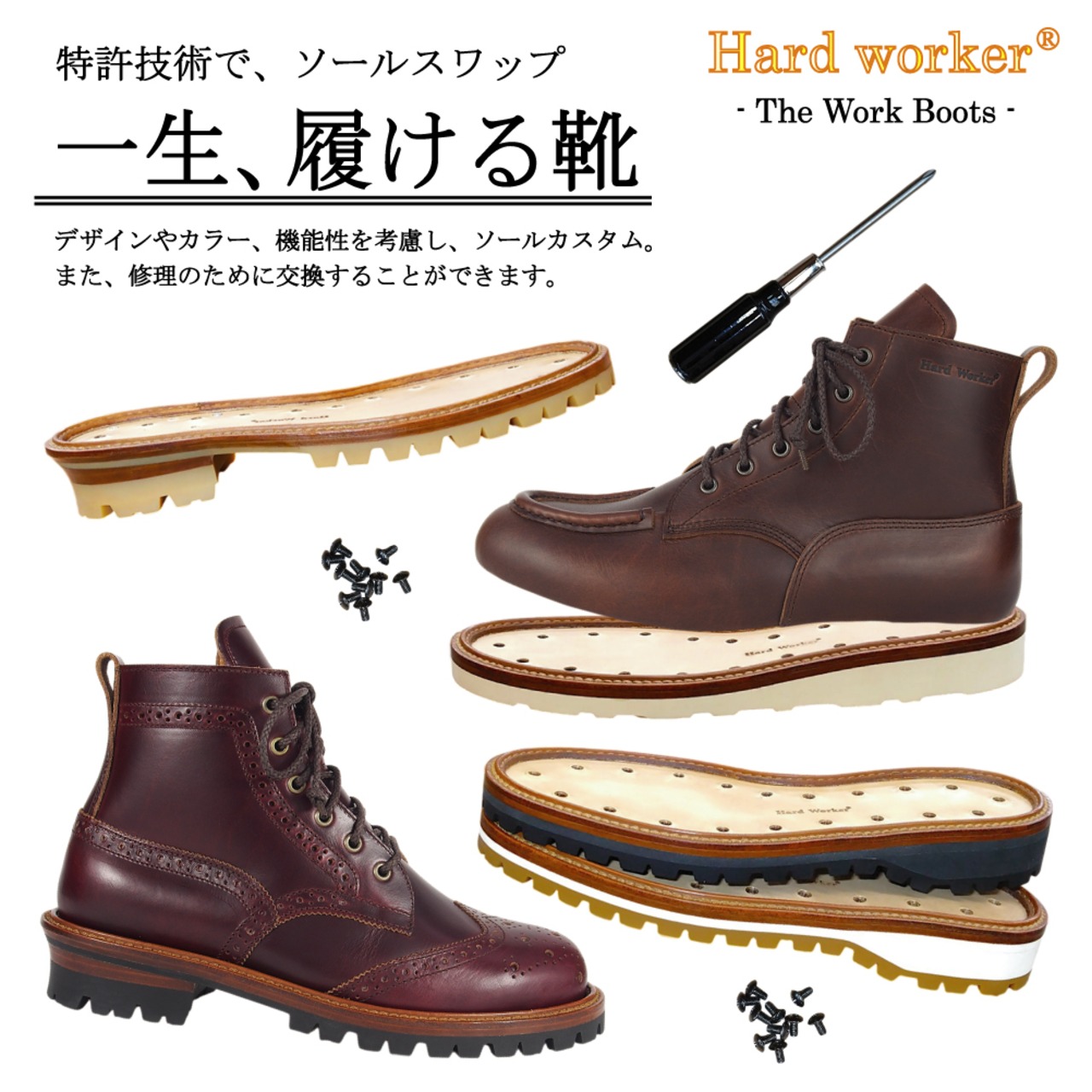 『The Work Boots』は、Hard Worker®のフラッグシップモデルで、特許技術でソールを自由に交換できて、『一生、履けるワークブーツ』です。
