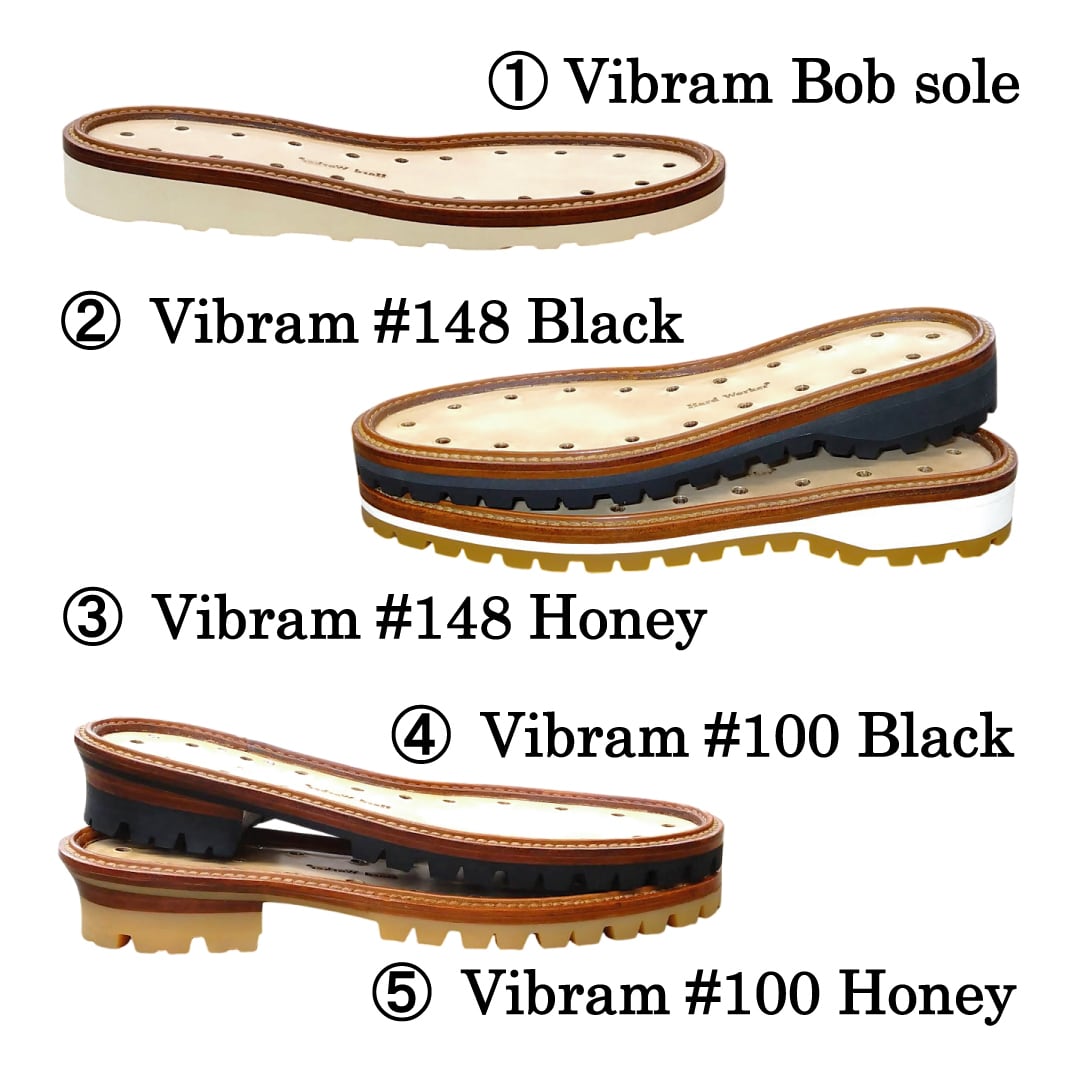 『The Work Boots』は、5種類のビブラムソールからお選びいただけます。