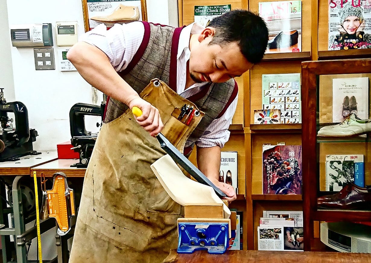 その間に、底付け職人の寺西 貢 氏と出会い、日本式のハンドソーンウェルテッド製法を習得する。